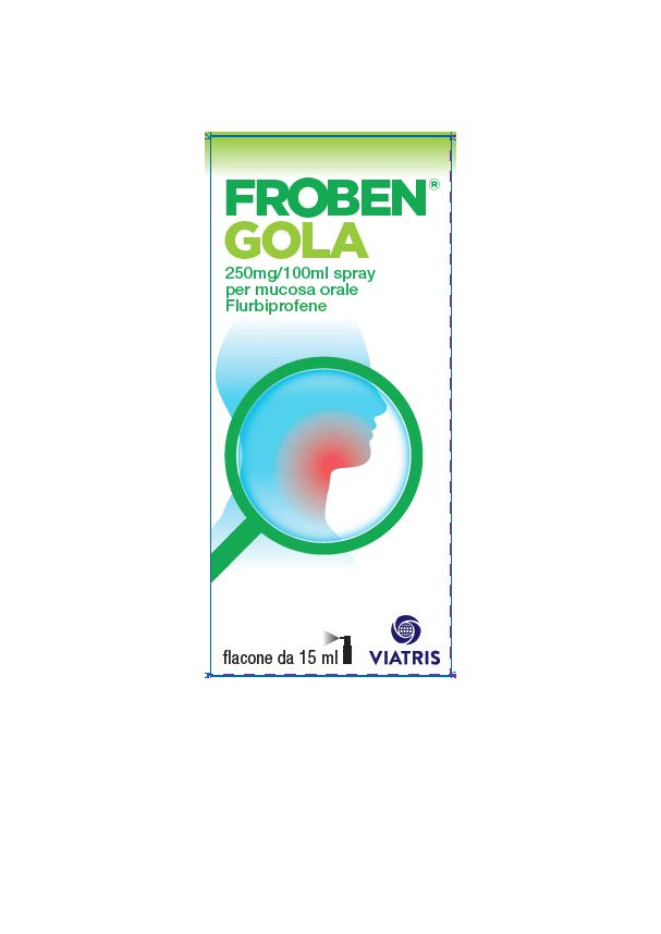 Deve essere utilizzata la minima dose efficace per il minor tempo necessario al fine di alleviare i sintomi (vedere paragrafo 4.4). Si raccomanda l'utilizzo di questo medicinale per un massimo di tre giorni. Posologia. Collutorio: la dose raccomandata e' di due o tre risciacqui ogargarismi al giorno con 10 ml di collutorio. Puo' essere diluito inacqua. Spray per mucosa orale: la dose raccomandata e' di 2 spruzzi 3volte al giorno indirizzati direttamente sulla parte interessata. Popolazione pediatrica: non sono disponibili dati adeguati sulla popolazione pediatrica; pertanto l'utilizzo del medicinale non e' raccomandato.Modo di somministrazione: l'uso di Froben Gola e' esclusivamente peruso orale locale e non deve essere ingerito.